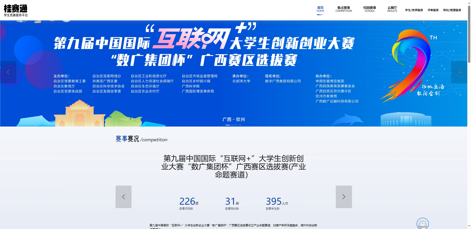 (7)数据全汇聚:平台可汇集全区各高校参赛数据,支持数据大屏;